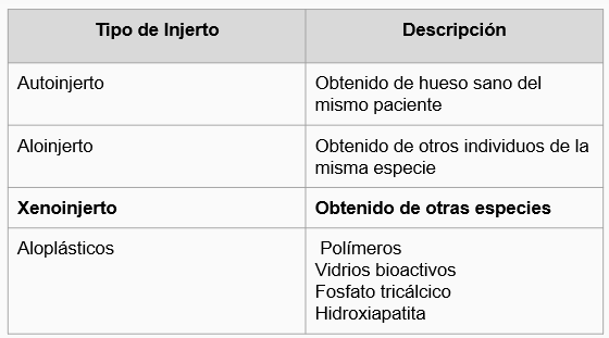 Los injertos óseos se colocan dentro de los espacios ubicados alrededor de un hueso roto o de defectos óseos cumpliendo la función de sustrato para la regeneración de tejido óseo.